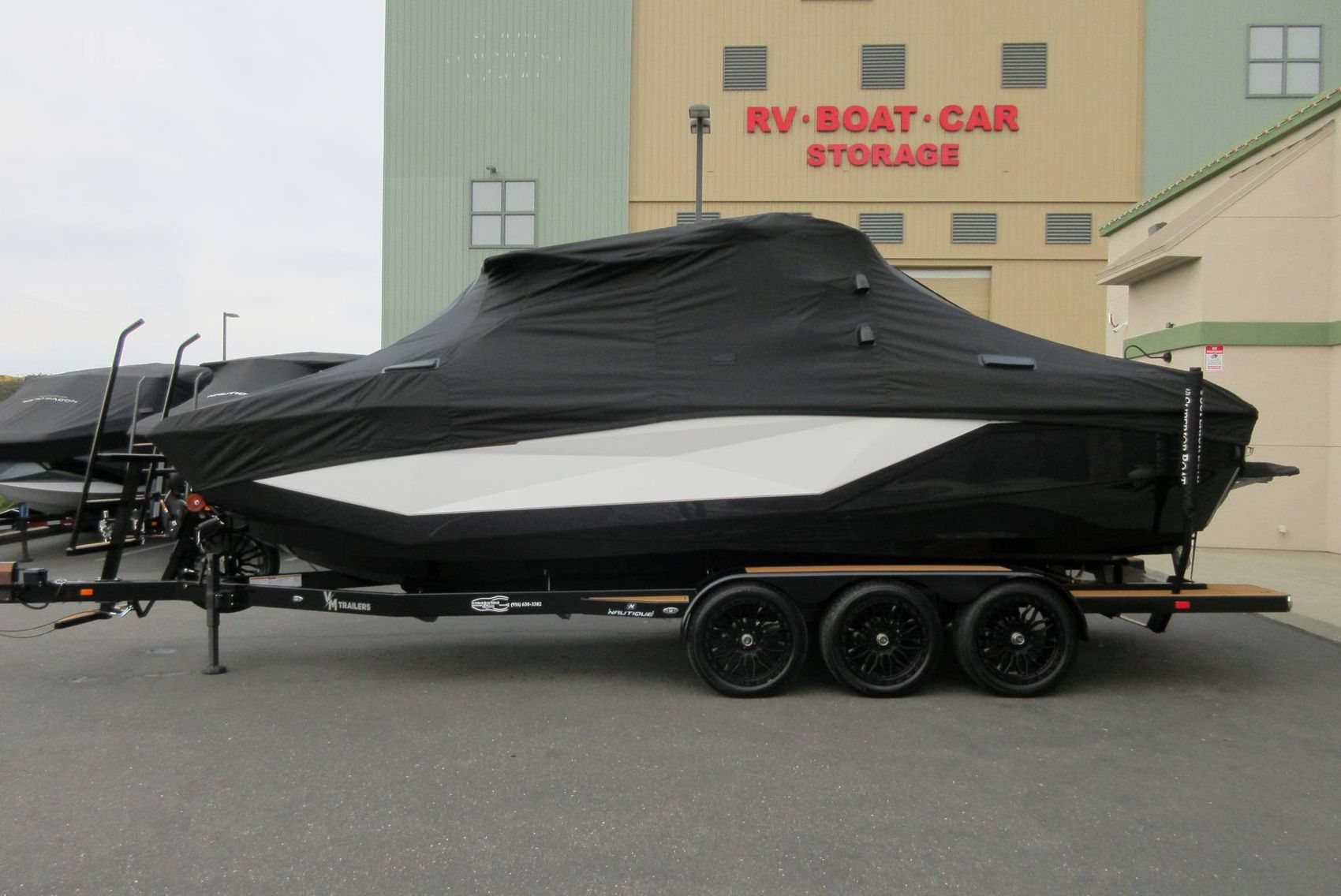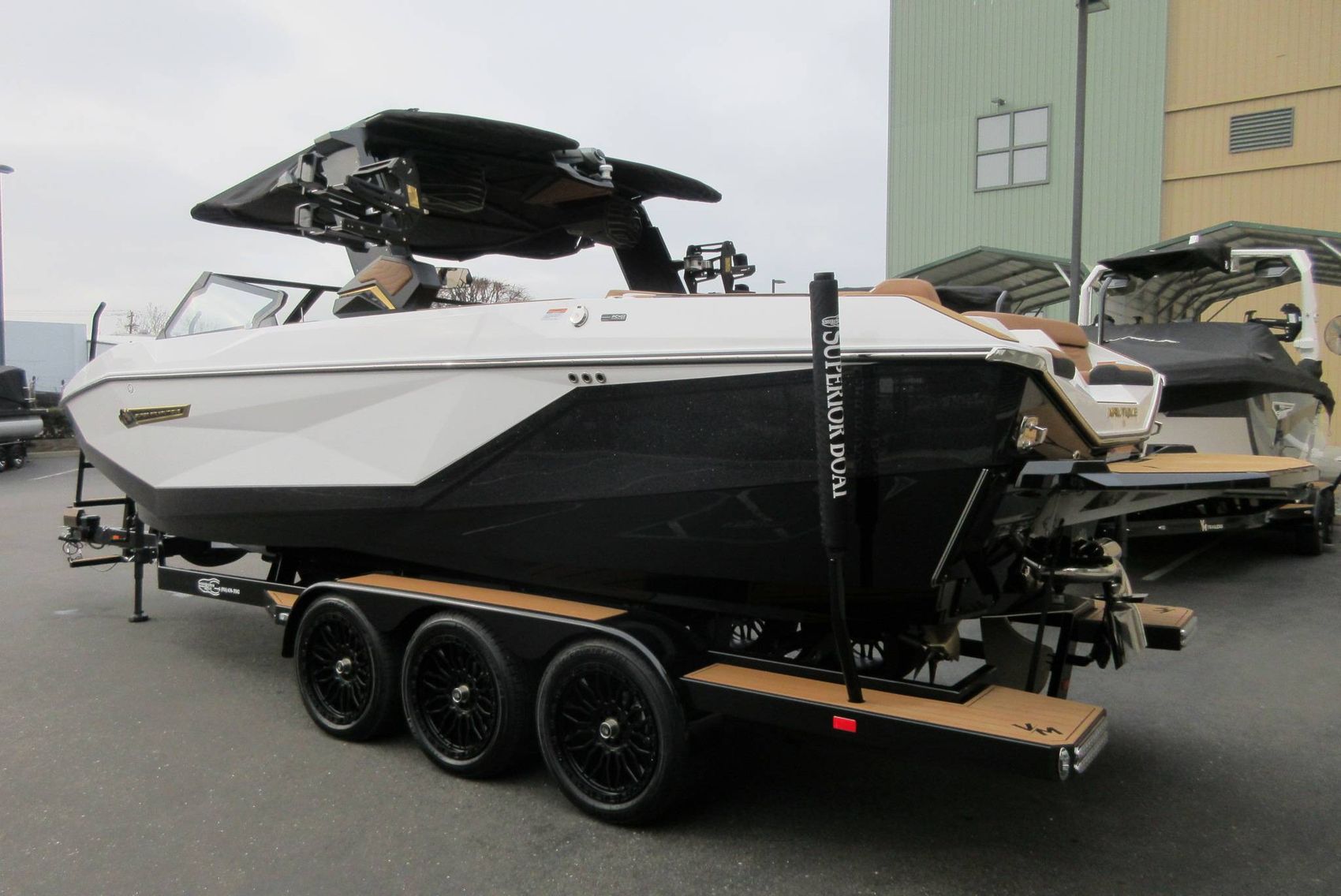 • VM Triple Axle Trailer with Electric Brakes, Bow Ladder, Transom Steps, Retractable Transom Straps, Side Mount Spare Tire