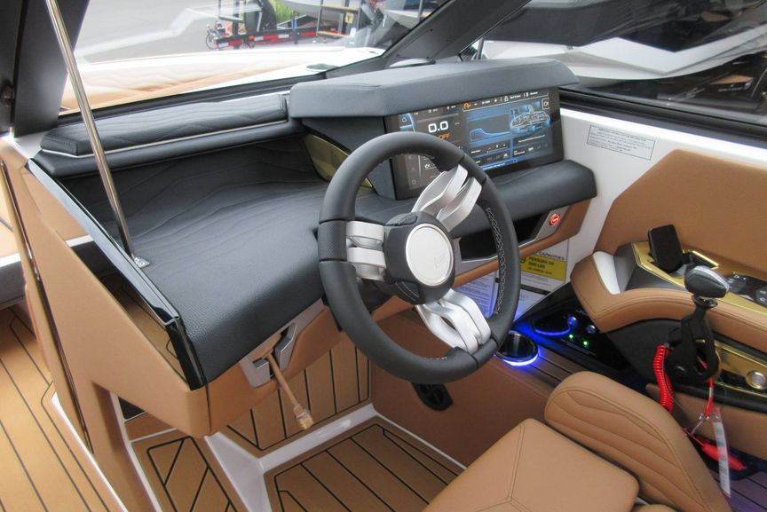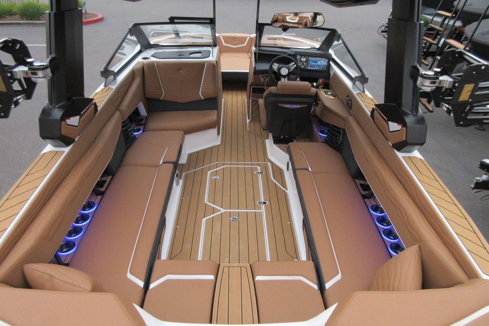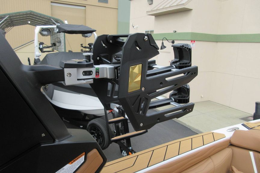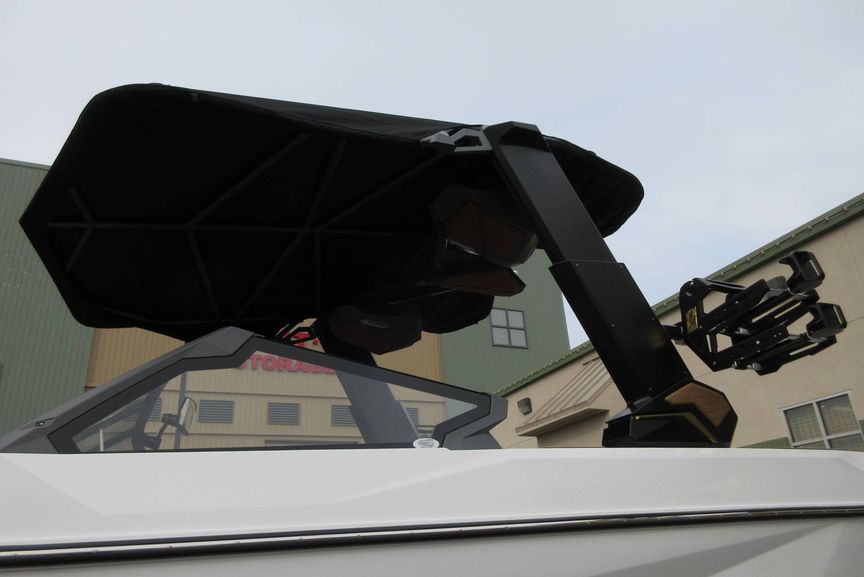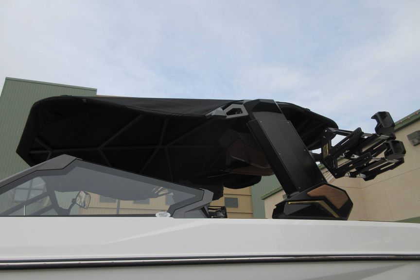 • Telescoping Flight Control Tower - Which Includes: Tower Mounted Bimini Top, Dual Housing JL Audio M6 Series 880x Tower Speakers, Nautique Strapless Board Racks, Nautique Awareness Camera