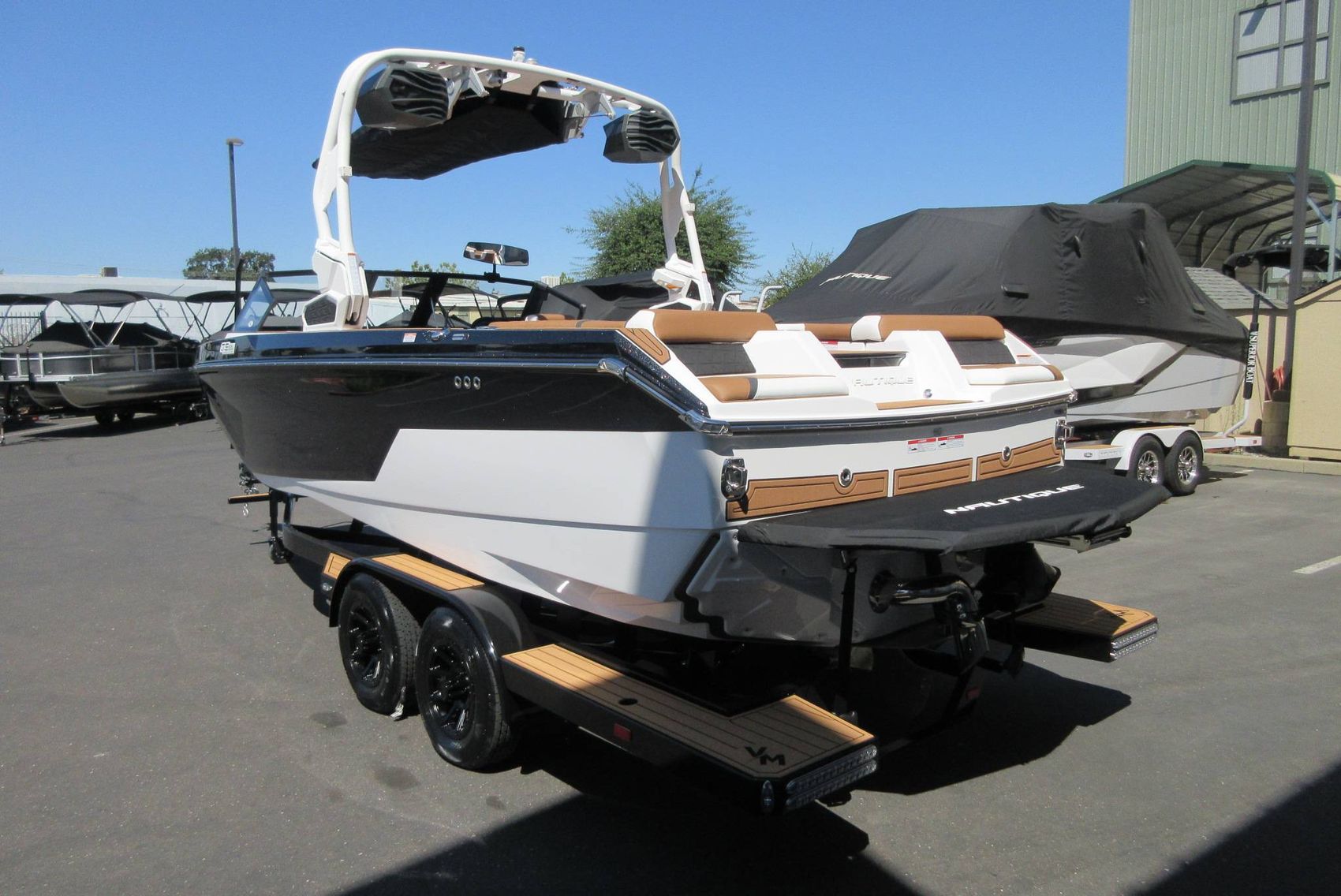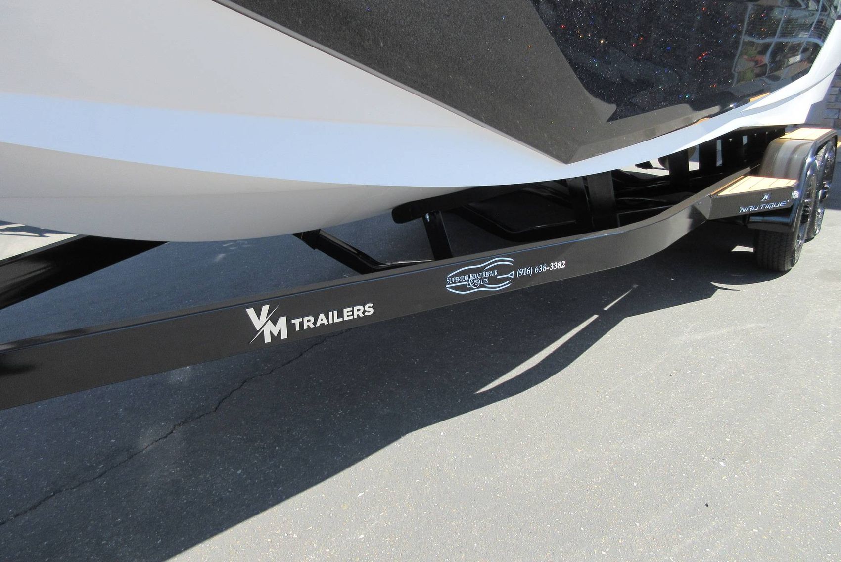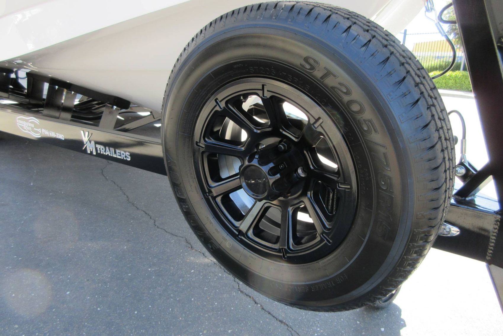 - VM Tandem Axle Trailer with Hydraulic Surge Brakes, Retractable Transom Straps, Side Mount Spare Tire