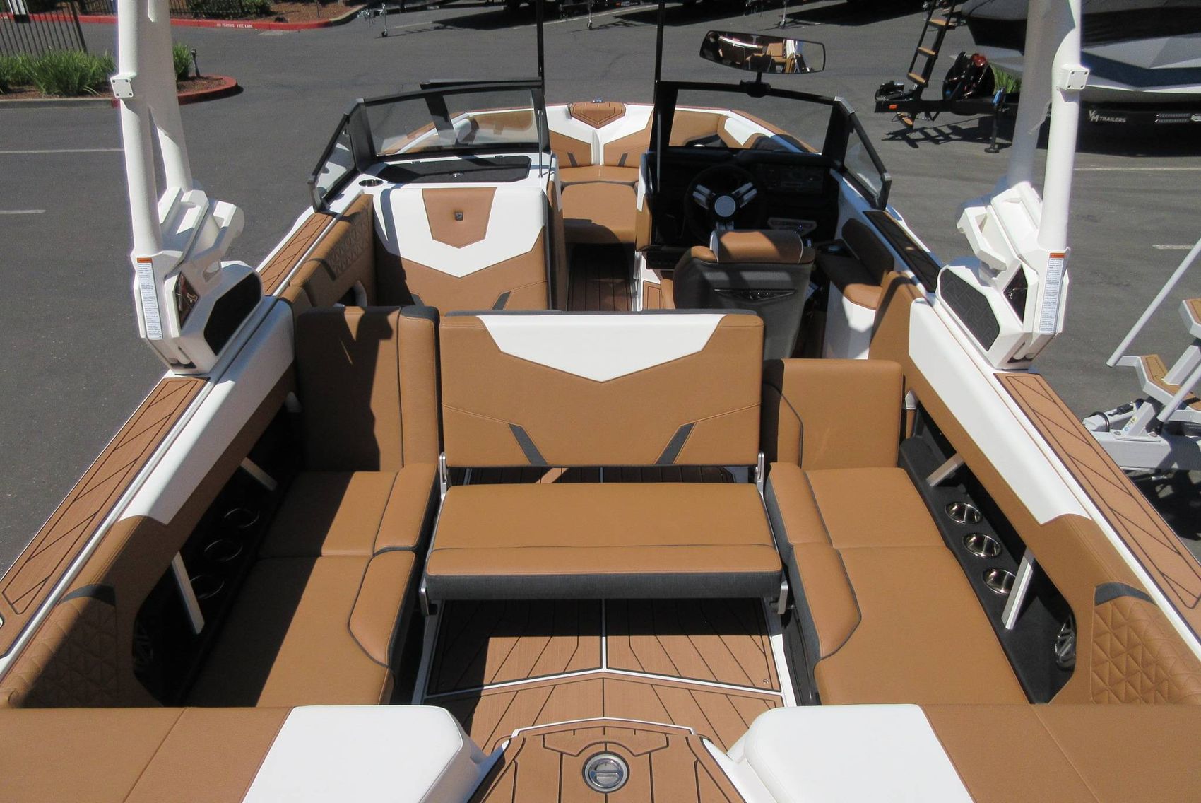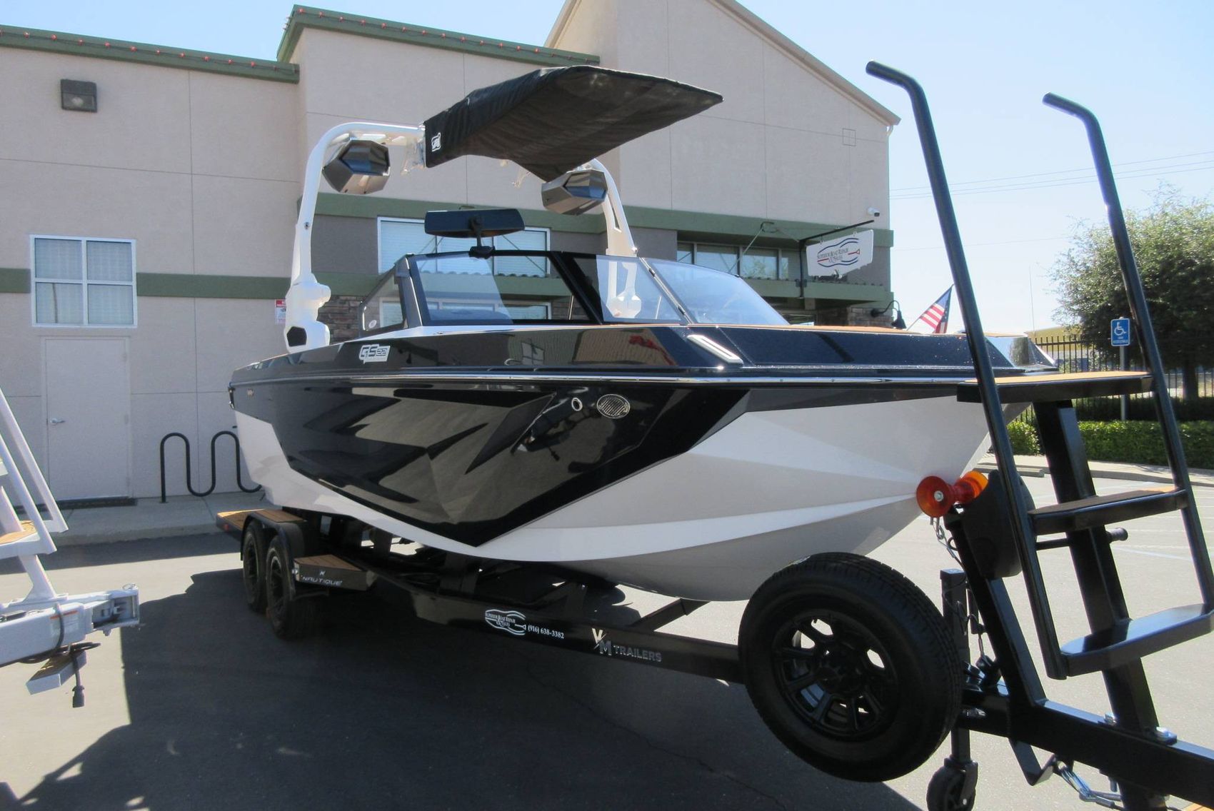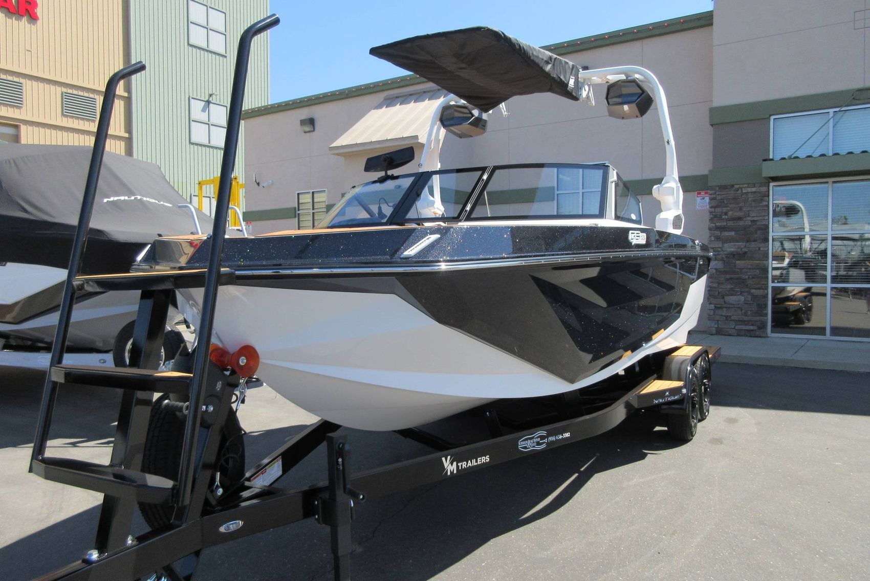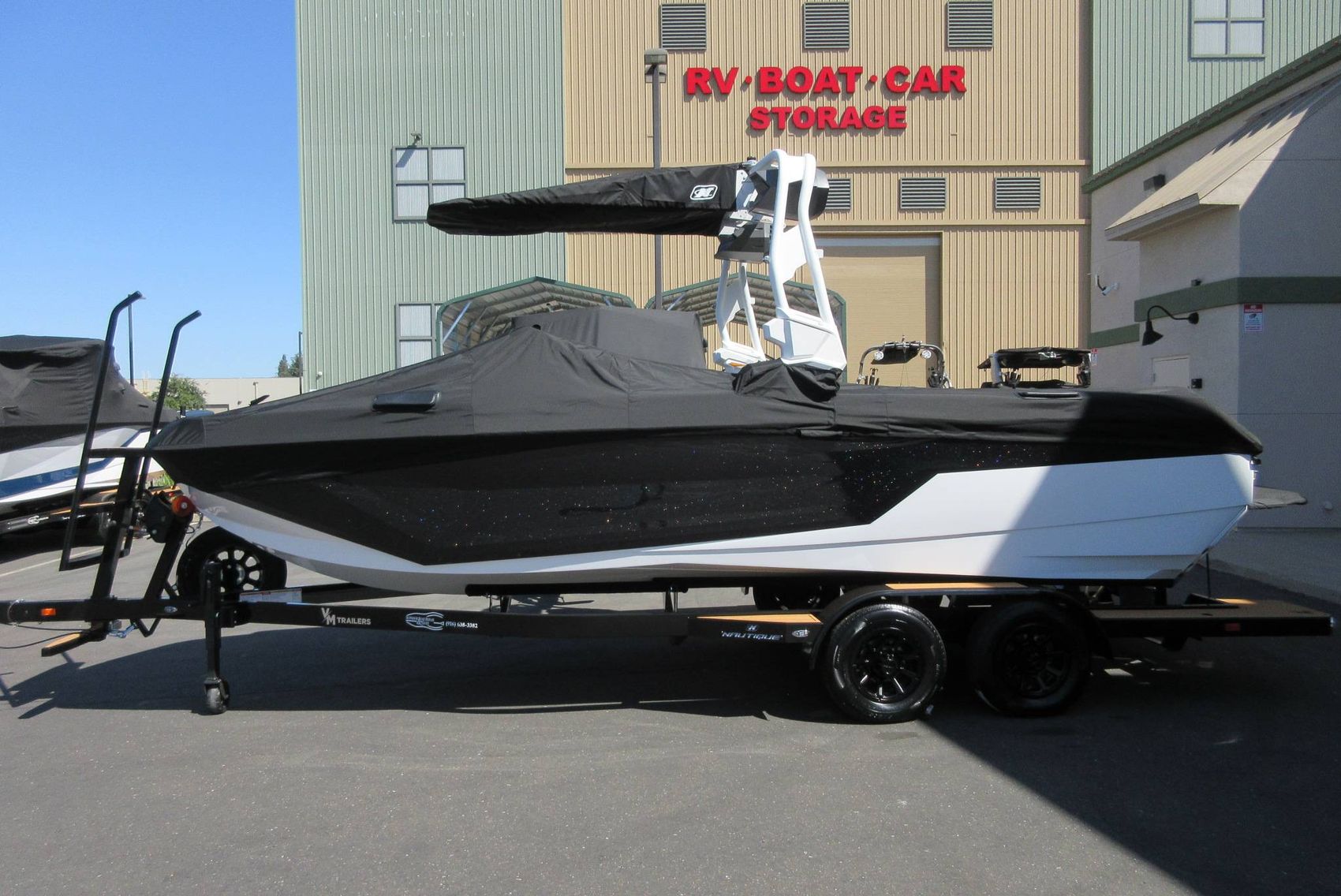 - VM Tandem Axle Trailer with Hydraulic Surge Brakes, Retractable Transom Straps, Side Mount Spare Tire