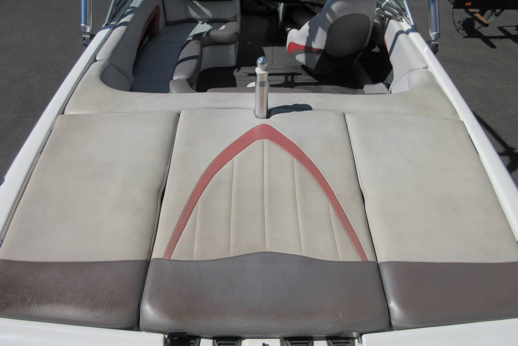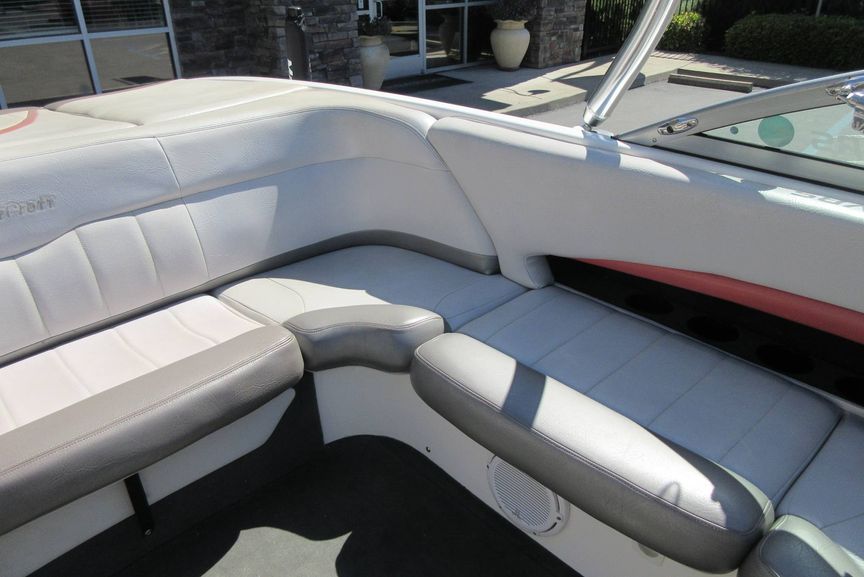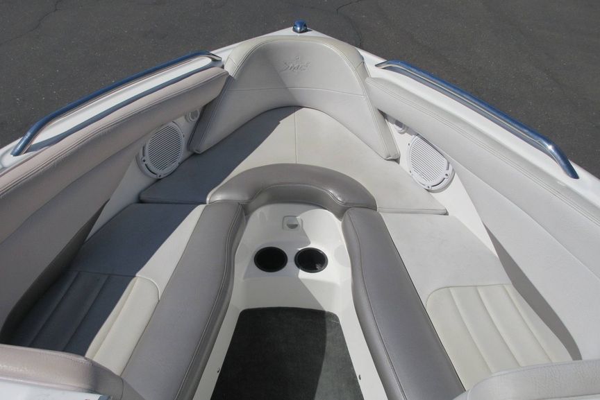 Powered by a reliable Indmar 5.7L V-8 engine, this boat offers strong hole shot and consistent pull for watersports. The V-drive layout opens up a spacious interior with wraparound seating and an open bow, comfortably accommodating up to 10 passengers.